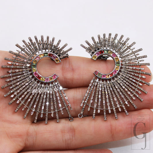 Antique Look Baguettes Pave Diamond Earring Sterling Silver Earring Pave Diamond Silver Earring Sterling Diamond Sapphire Earring Jewelry