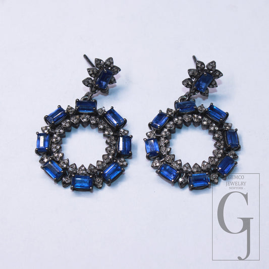 Beautiful blue Kyanite designer earring Rosecut pave diamond earrings 925 sterling silver handmade silver finish diamond Kyanite earrings