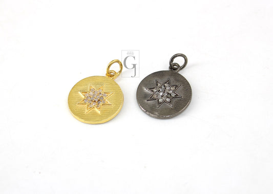 14k Finish Starburst Pendant Designer Rosecut Pave Diamond Pendant Sterling 925 Silver Handmade Finish Diamond Charms Necklace Pendant