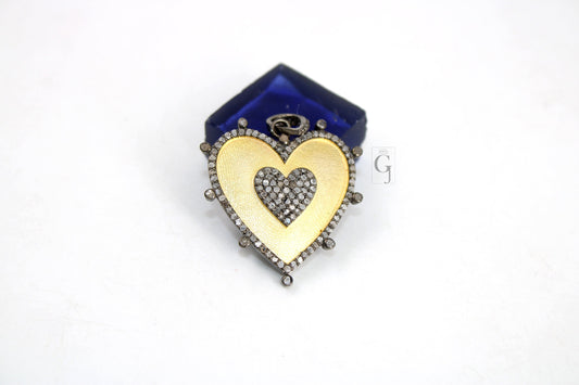 14k Gold Antique Look Heart Pendant Rosecut Pave Diamond Pendant 925 Sterling Silver Handmade Finish Diamond Charms Necklace Pendant