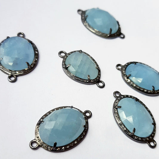 Checkercut Aqua Chelsy Colour Natural Stone 925 Sterling Silver Handmade Pave Diamond Setting Rosecut Diamond Silver Connector