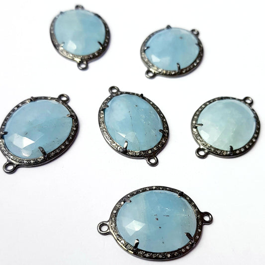 Checkercut aqua Chelsy natural color stone 925 sterling silver handmade pave diamond setting vermeil oxidised silver connector