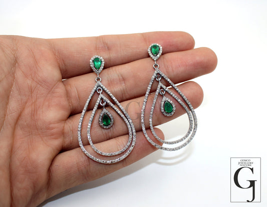 Fashionable Emerald designer earring Rosecut pave diamond earrings 925 sterling silver handmade silver finish sapphire diamond earrings