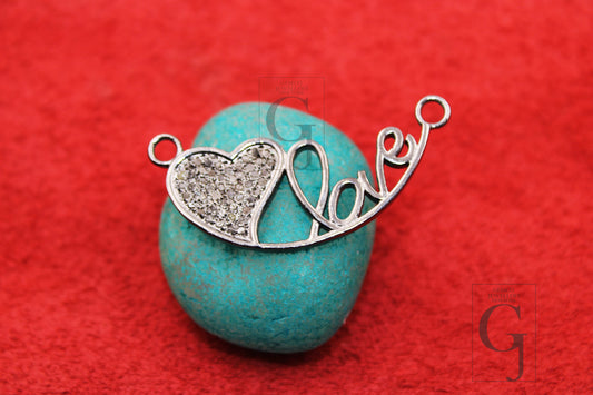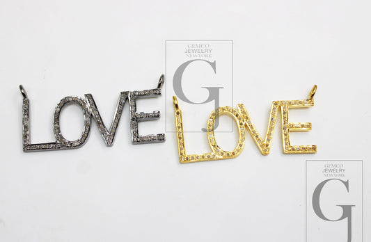 Fashionable love designer pendant Rosecut pave diamond pendant 925 sterling silver handmade finish diamond charms necklace pendant jewelry