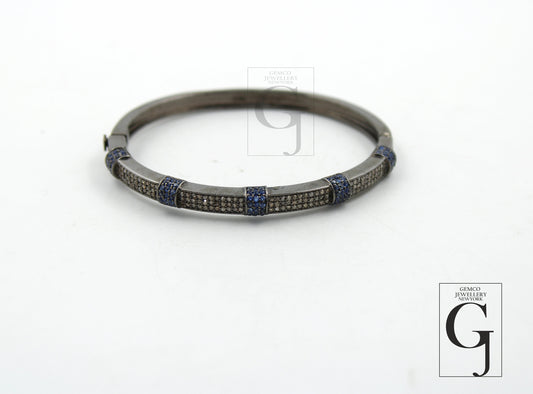 Fashionable diamond sapphire bracelet Rosecut pave diamond bangle bracelet 925 sterling silver handmade finish diamond bangle bracelet