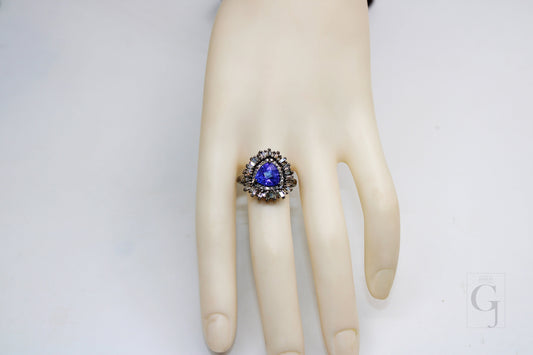 Fashionable Designer Tanzanite Baguette Diamond Ring Rosecut Pave Diamond Rings 925 Sterling Silver Handmade Silver Finish Diamond Ring
