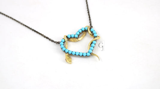 Fashionable heart and snake pendant necklace designer pave turquoise pendant sterling 925 silver handmade finish turquoise charms pendant