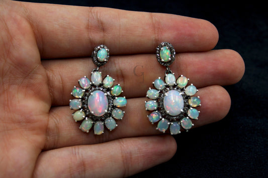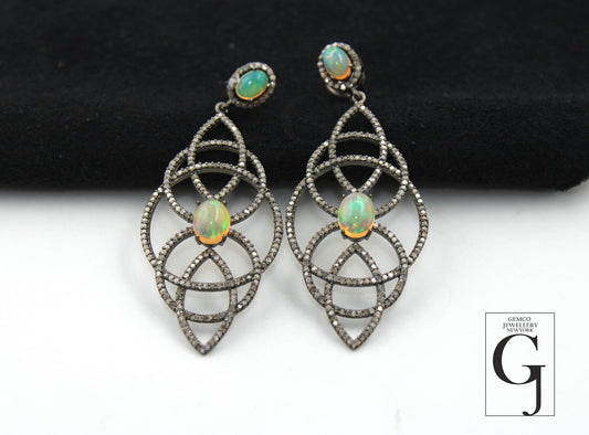 Fashionable Natural Opal Earring Designer Earring Rosecut Pave Diamond Earrings 925 Sterling Silver Handmade Silver Diamond Earring