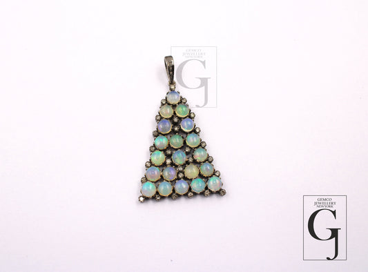 Fashionable natural Opal designer Rosecut pave diamond pendant 925 sterling silver handmade finish diamond jewelry necklace pendant
