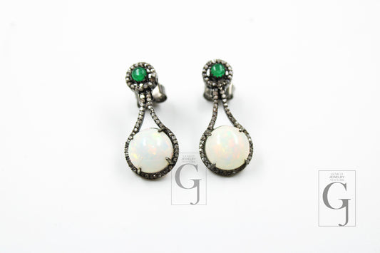 Fashionable opal and emerald designer earring Rosecut pave diamond earrings 925 sterling silver handmade silver finish diamond earring