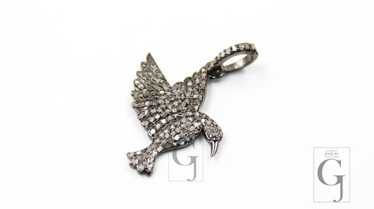 Fashionable oxidized designer bird pendant Rosecut pave diamond pendant 925 sterling silver handmade finish diamond charms necklace pendant