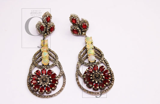 Fashionable Opal earring, red ruby earring designer Rosecut pave diamond earrings 925 sterling silver handmade silver finish diamond earring