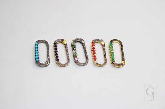 Fashionable Rosecut Pave Diamond Paper Clip Design Spring Clasps 925 Sterling Silver Handmade Finish Diamond/Sapphire/Ruby/Emerald Clasps