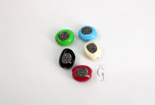 Fashionable Rosecut Pave Diamond Bead 925 Sterling Silver Handmade Silver Finish Enameling Color Beads Designer Diamond Bead 15mm
