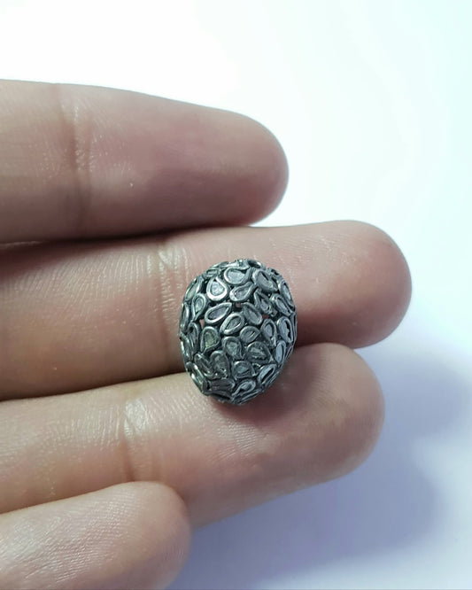 Flat Diamond Antique Look Oval Design Rosecut Pave Diamond Beads Spacers 925 Sterling Silver Handmade Silver Finish Diamond Beads 15mm Size