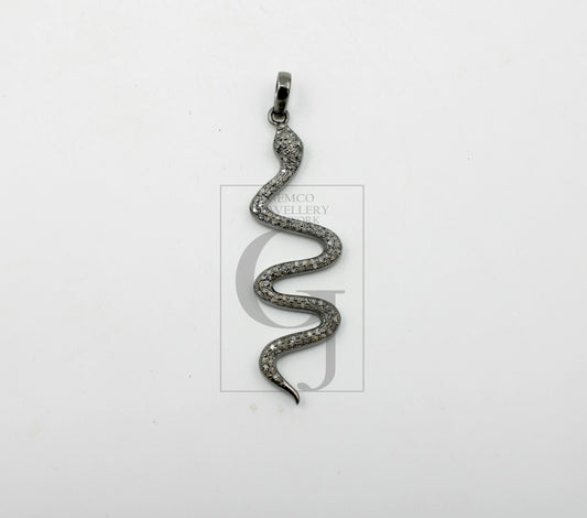 Fashionable snake designer pendant Rosecut pave diamond pendant 925 sterling silver handmade finish diamond jewelry necklace pendant