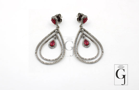 Fashionable ruby designer earring Rosecut pave diamond earrings 925 sterling silver handmade silver finish diamond earrings