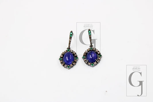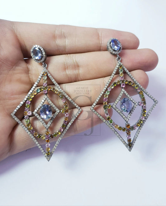 Fashionable tanzanite and tourmaline designer Rosecut pave diamond earrings 925 sterling silver handmade silver finish diamond earrings