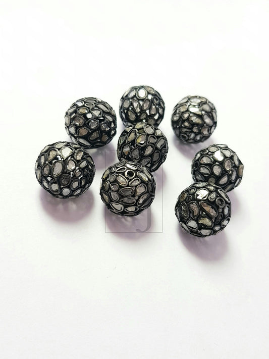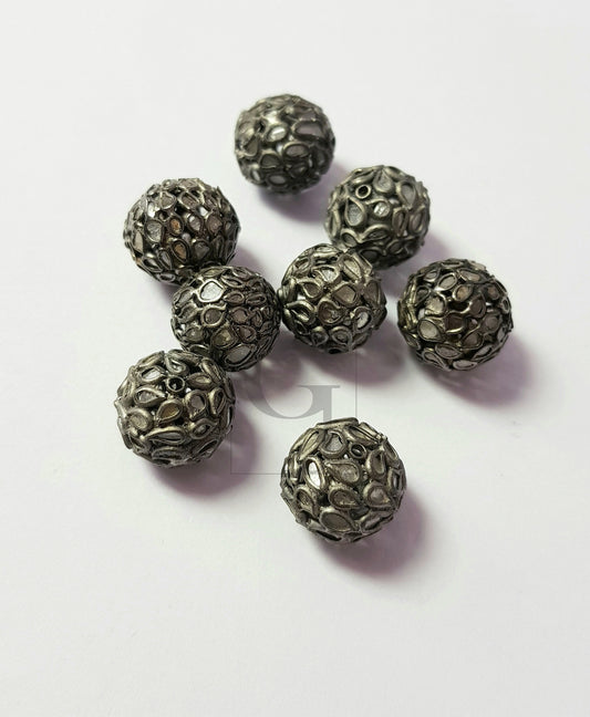 Flat Diamond Antique Look Polki Design Rosecut Pave Diamond Bead Spacers 925 Sterling Silver Handmade Silver Finish Diamond Bead 12mm Size