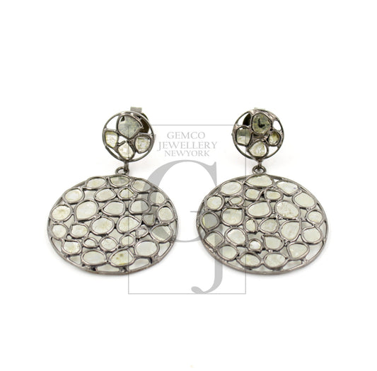 Fashionable round polki diamond earring Rosecut pave diamond earrings 925 sterling silver handmade silver finish flat diamond round earrings