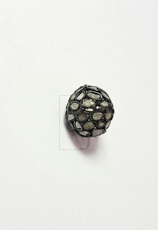 Flat Diamond Antique Look Polki Design Rosecut Pave Diamond Bead Spacers 925 Sterling Silver Handmade Silver Finish Diamond Bead 15mm Size