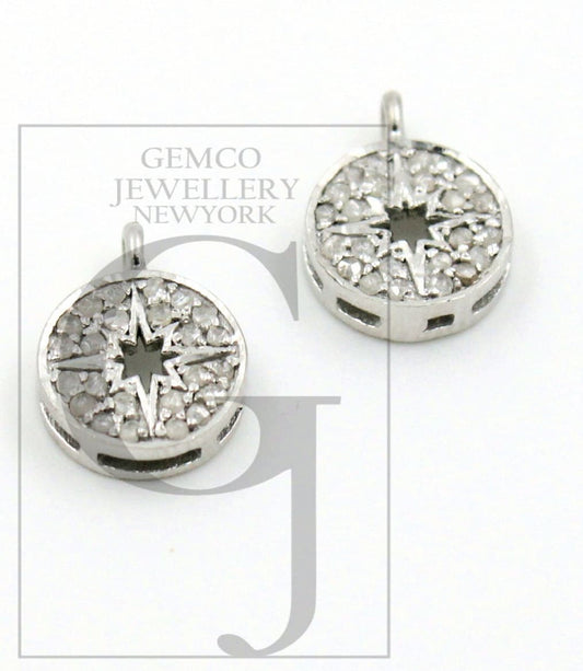 Fashionable Starburst Rosecut Pave Diamond Pendant 925 Sterling Silver Handmade Finish Diamond Charms Available In Vermeil, Oxidised Also
