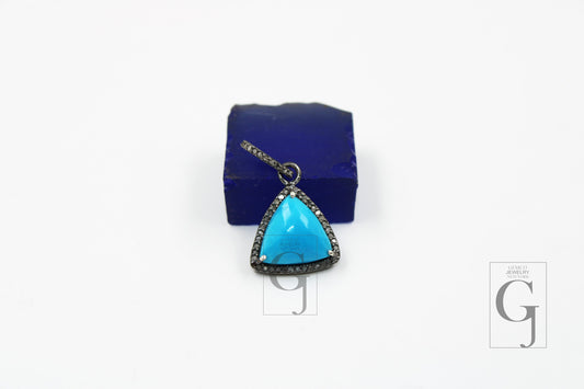 Fashionable Turquoise Pendant Designer Rosecut Pave Diamond Pendant 925 Sterling Silver Handmade Finish Diamond Charms Necklace Pendant