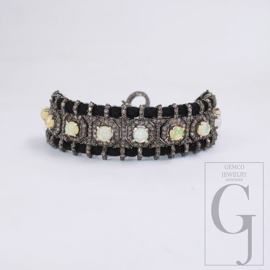 Fire Opal Design Thread Bracelet Rose Cut Pave Diamond Thread Bangle Bracelet 925 Sterling Silver Handmade Finish Bangle Bracelet Jewelry