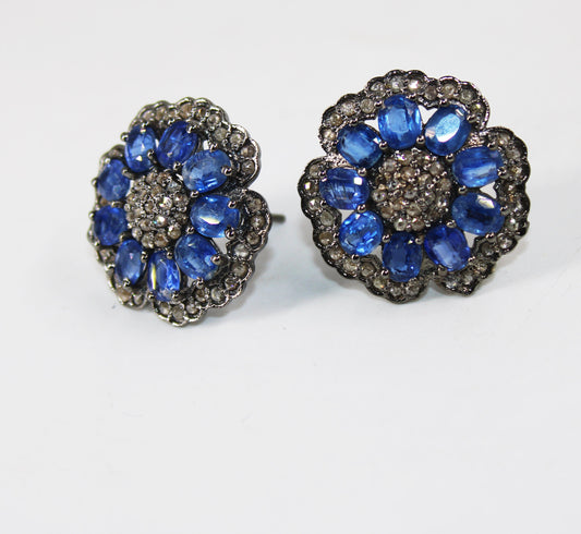 Flower design kayite earring stud tops Pave rosecut diamond 925 sterling silver handmade very beautiful diamond pave stud earrings