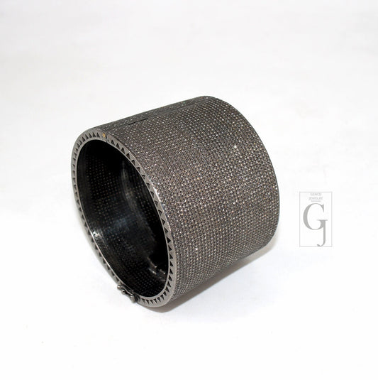 Full pave diamond antique statement bangle Rosecut pave diamond bangle bracelet 925 sterling silver handmade finish diamond bangle bracelet