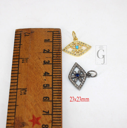 Flower pendant Sapphire turquoise designer Rosecut pave diamond pendant 925 sterling silver handmade finish diamond charm necklace pendant