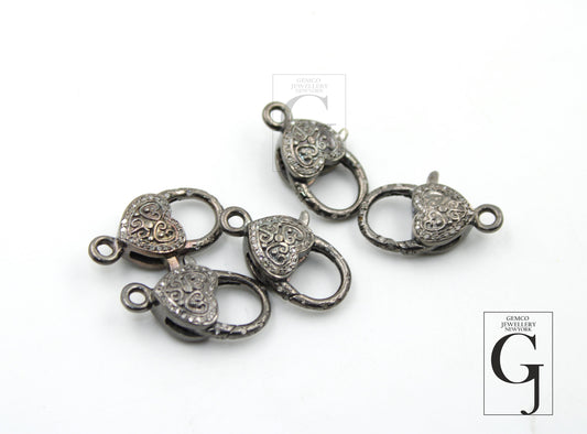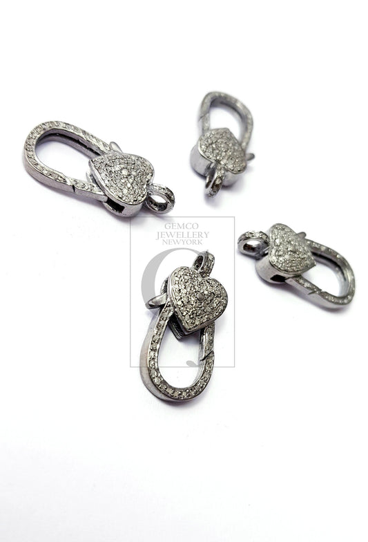 Heart Design Rosecut Pave Diamond Lobster Design Clasp 925 Sterling Silver Handmade Finish Diamond Clasp With Matching Jump Ring