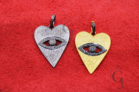 Heart shaped evil eye pendant designer Rosecut pave diamond pendant 925 sterling silver handmade finish diamond jewelry necklace pendant