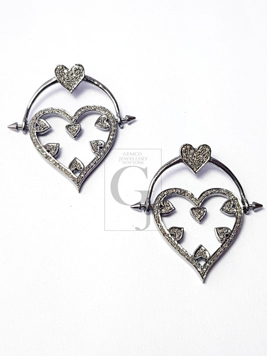 Heart Shape Antique Look Rosecut Pave Diamond Design Lobster Clasps 925 Sterling Silver Handmade Finish Diamond Necklace Clasp