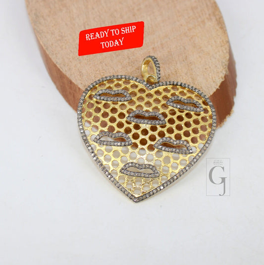 Heart pendant designed beautiful Pave diamond rosecut pendant 925 sterling silver pendant handmade diamond pendant