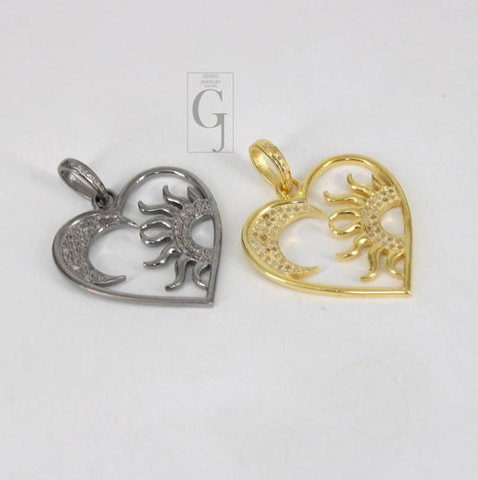 Heart shape moon and sun pendant designer Rosecut pave diamond pendant 925 sterling silver handmade finish diamond charms necklace pendant