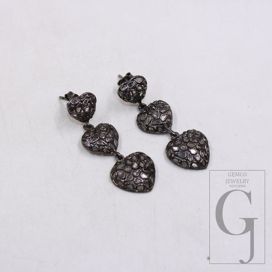 Heart Design Earring Polki Diamond Rosecut Slice Diamond Earrings 925 Sterling Silver Handmade Silver Finish Flat Diamond Earrings Jewelry