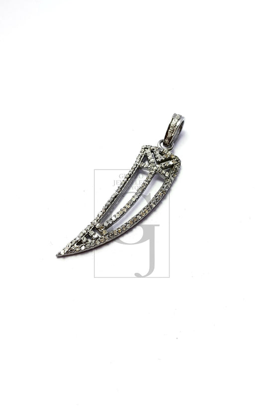 Latest design sword shaped Rosecut pave diamond pendant 925 sterling silver handmade finish diamond pendant jewelry