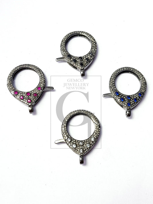 Latest Design Rosecut Pave Diamond Lobster Design Clasp 925 Sterling Silver Handmade Finish Color Stone Diamond Clasp