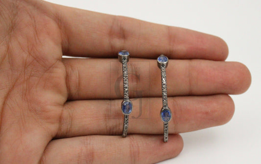 Latest Designer Push Back Hoop Kyanite Stone Earing Rosecut Pave Diamond Earrings 925 Sterling Silver Handmade Silver Finish Diamond Earring