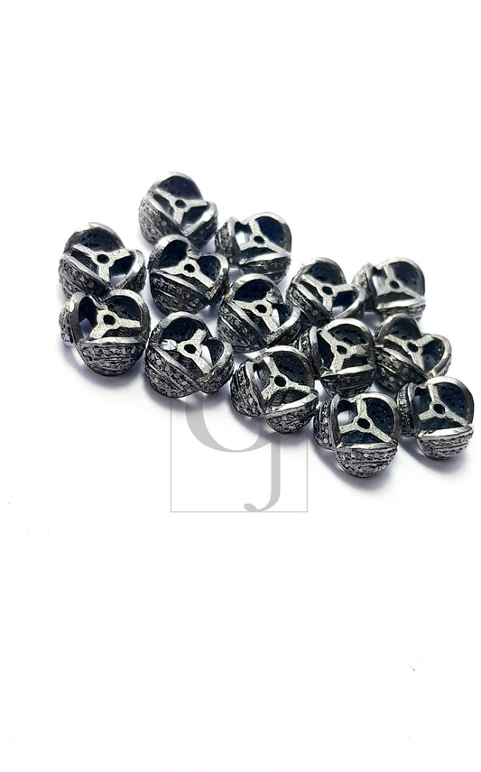 Latest Designer Rosecut Pave Diamond Bead 925 Sterling Silver Handmade Silver Finish Diamond Bead