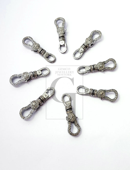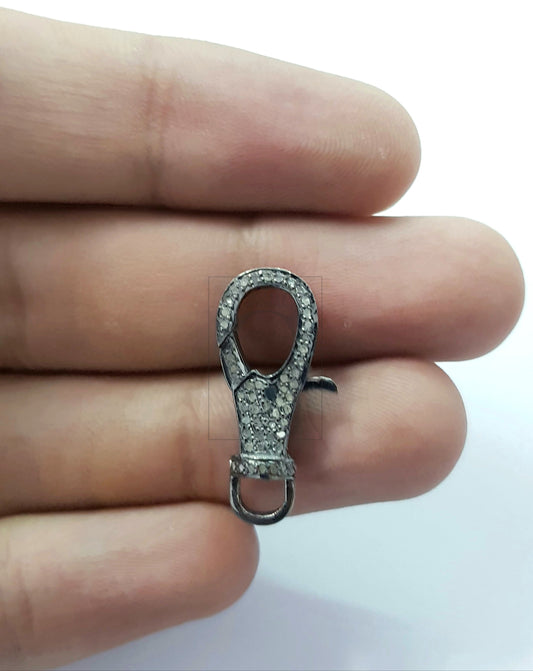 Latest Design Rosecut Pave Diamond Lobster Design Clasp 925 Sterling Silver Handmade Finish Diamond Clasp 23mm Size With Matching Jump Ring