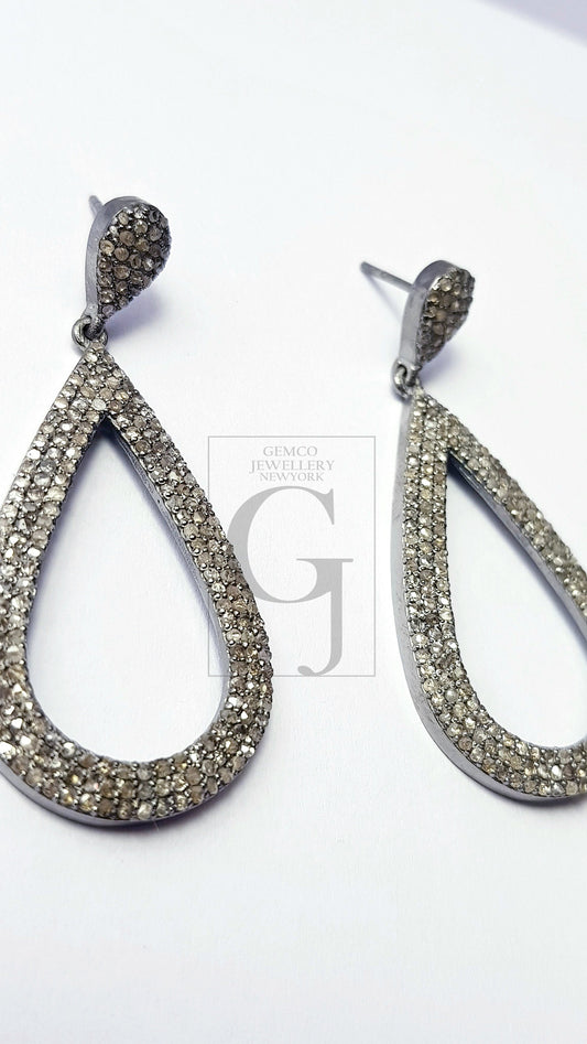 Latest design Rosecut pave diamond earrings 925 sterling silver handmade silver finish teardrop shaped beautiful diamond earrings charms