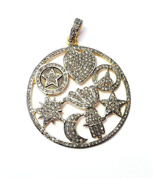 Latest Designer Lucky Charms sign Rosecut pave diamond pendant 925 sterling silver handmade finish circle shaped diamond pendant jewelry