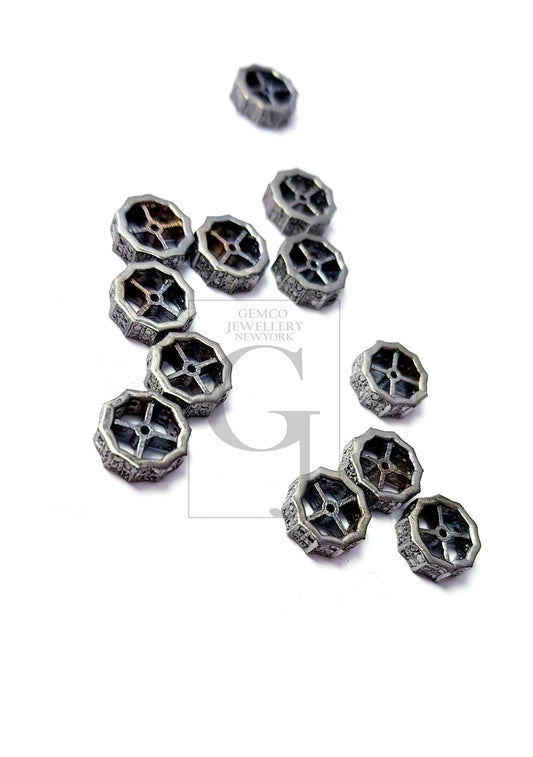 Latest Designer Rosecut Pave Diamond Bead Rondells 925 Sterling Silver Handmade Silver Finish Diamond Bead Rondelles