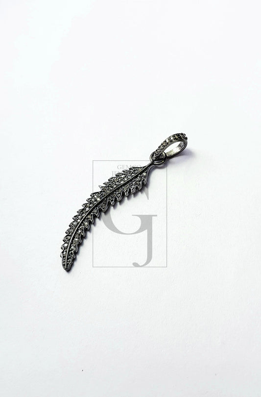 Latest Rosecut Pave Diamond Pendant 925 Sterling Silver Handmade Finish Leaf Design Diamond Pendant Jewelry
