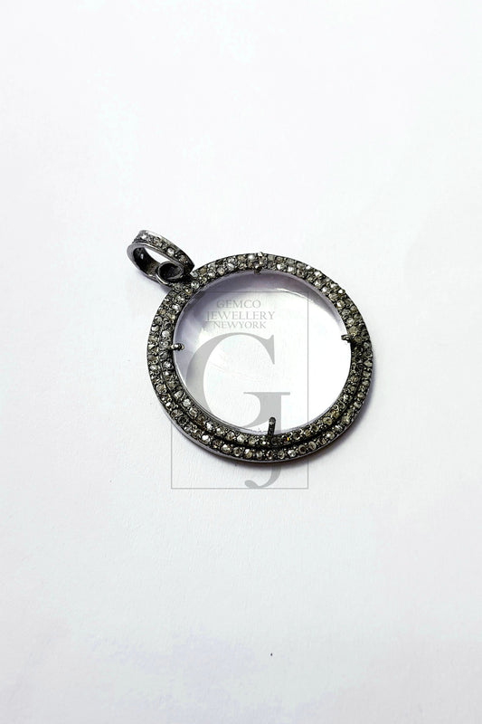 Latest Designers Shape Natural Crystal Stone Rosecut Pave Diamond Pendant 925 Sterling Silver Handmade Finish Beautiful Diamond Charms