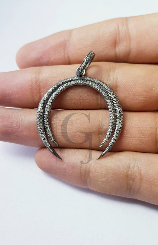Latest Moon Designer Rosecut Pave Diamond Pendant 925 Sterling Silver Handmade Finish Diamond Charm Pendant