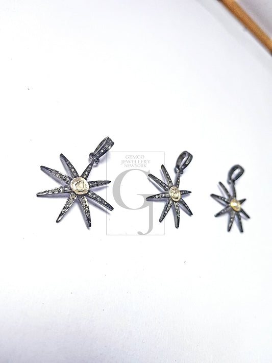 Latest Designer Sunburst Rocecut Pave Diamond Pendant 925 Sterling Silver Handmade Finish Diamond Jewelry