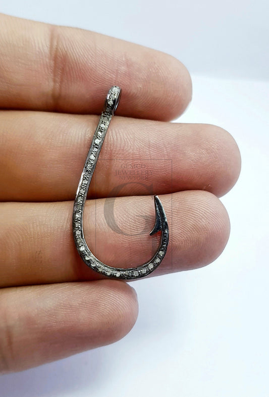 Latest Designer Rosecut Pave Diamond Pendant 925 Sterling Silver Handmade Finish Hook Style Diamond Pendant Jewelry